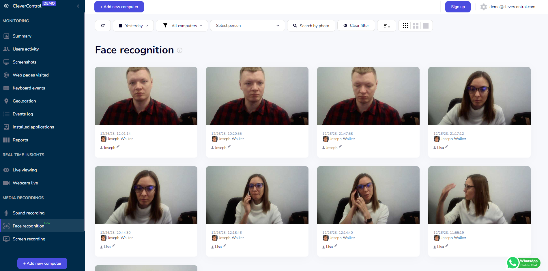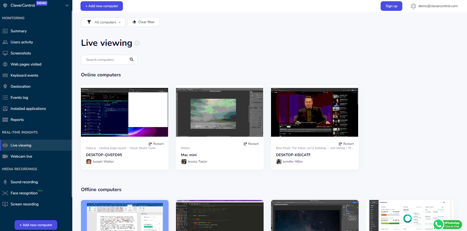 - **Gerçek Zamanlı İzleme ve Ekran Kaydı**: Yöneticiler, çalışanların ekranlarını gerçek zamanlı olarak izleyebilir ve tüm aktivitelerini kaydedebilir. Bu özellik, iş süreçlerinin şeffaf bir şekilde gözlemlenmesine ve verimlilik analizine olanak tanır.